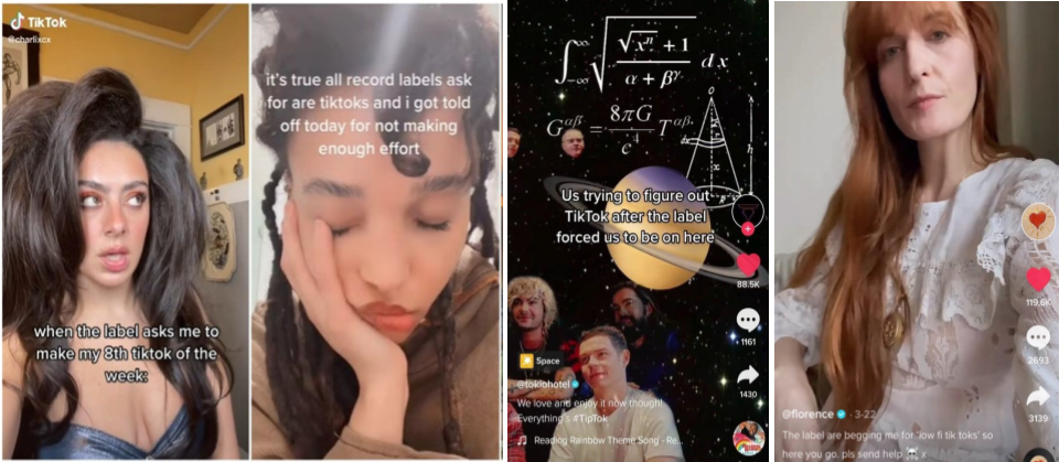 Charli XCX, FKA Twigs, Tokio Hotel e Florence Welch reclamam sobre a pressão de estarem ativos no TikTok. (Reprodução/TikTok)