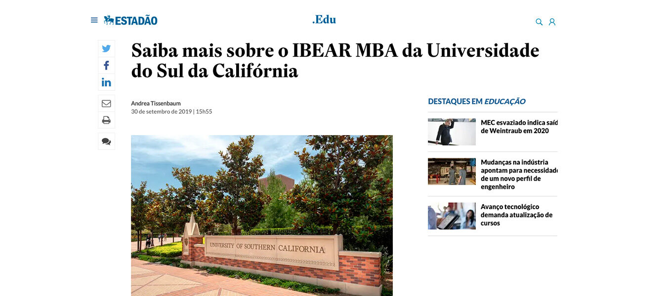 O Ibear MBA da Marshall School of Business da USC é um dos mais disputados cursos de negócios para executivos em meio de carreira dos Estados Unidos. Os alunos brasileiros são um público muito especial para este curso, que tem na diversidade de nacionalidades um valor muito importante. O Brasil também é considerado um player estratégico no comércio exterior mundial. Estes fatores levaram a universidade a ter um programa de bolsas especial para atrair alunos brasileiros para o curso.